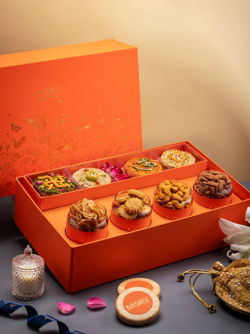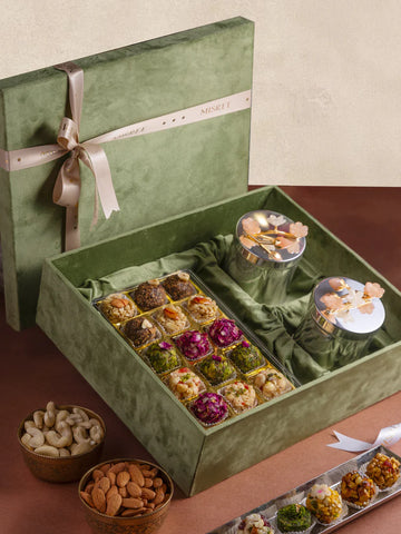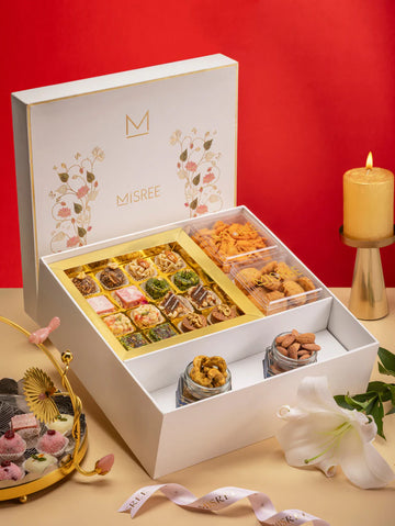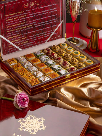 Experience the elegance of Misree’s sweets, embellished with the finest gold and silver varq. Each bite is a celebration of tradition and opulence, crafted to elevate your festive moments.