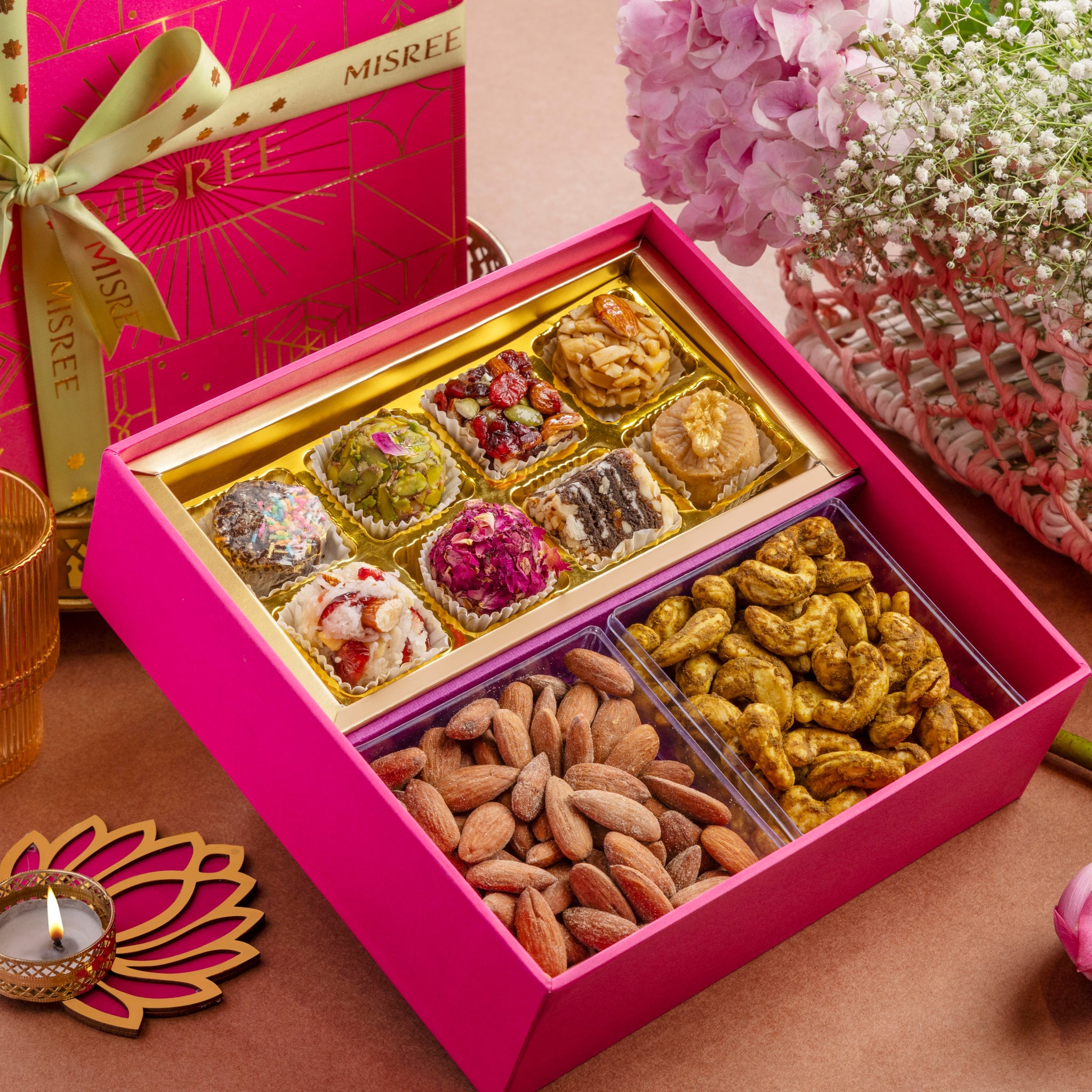 Experience the elegance of Misree’s sweets, embellished with the finest gold and silver varq. Each bite is a celebration of tradition and opulence, crafted to elevate your festive moments.