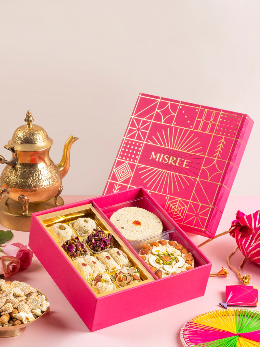 Eight handcrafted sweets unite with gourmet savouries in striking pink brilliance. This Lohri-inspired hamper brings...