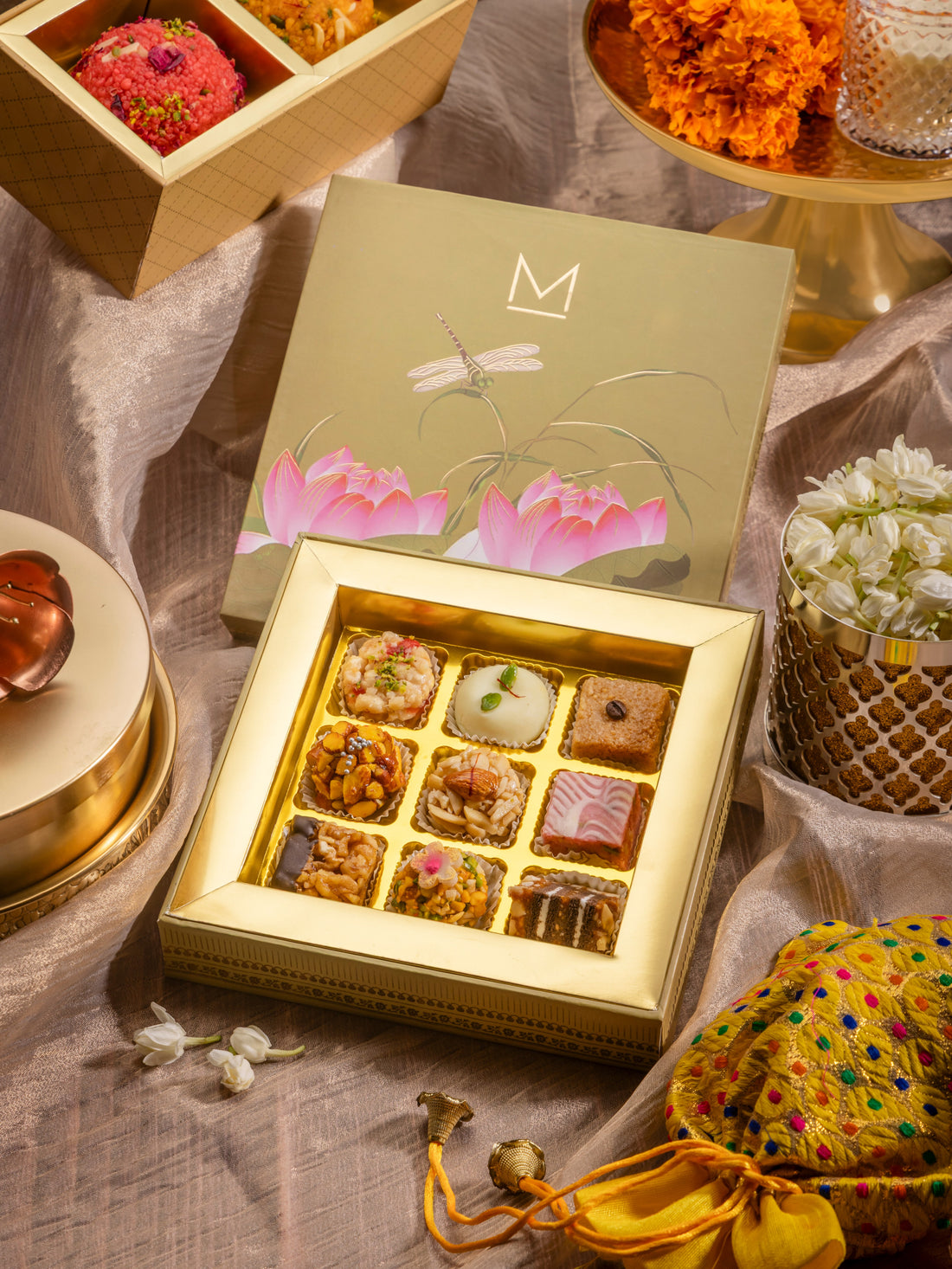 A luxurious assortment of 9 handcrafted Indian sweets, beautifully presented in an elegant gift box....