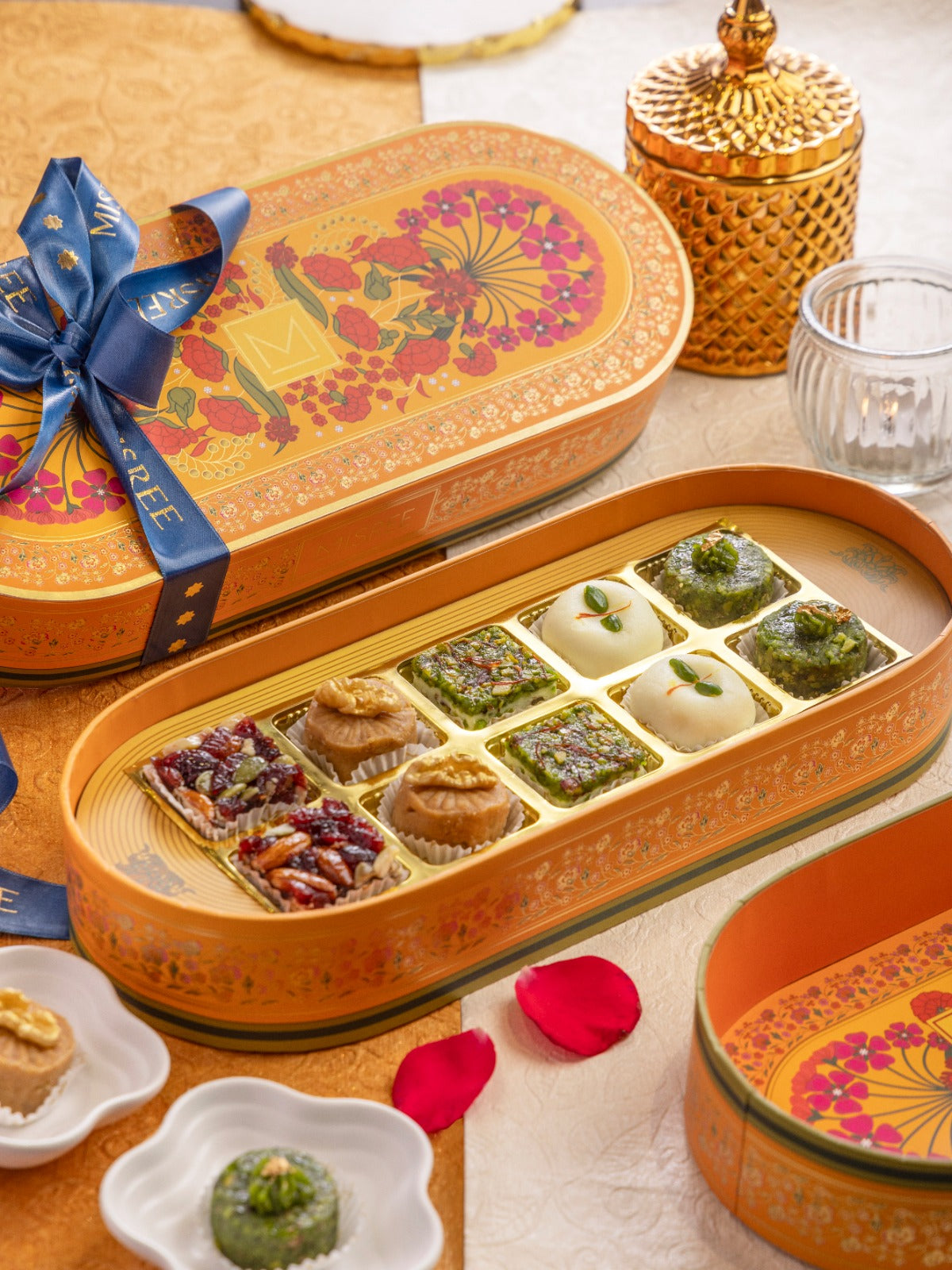 Celebrate indulgence with our Abharita Box of 10, a thoughtfully curated selection of ten premium sweets. Housed in an elegant box, it’s the perfect choice for gifting or savoring special moments. Customize your box by choosing from our most exotic and luxurious sweets, making every occasion even more delightful.