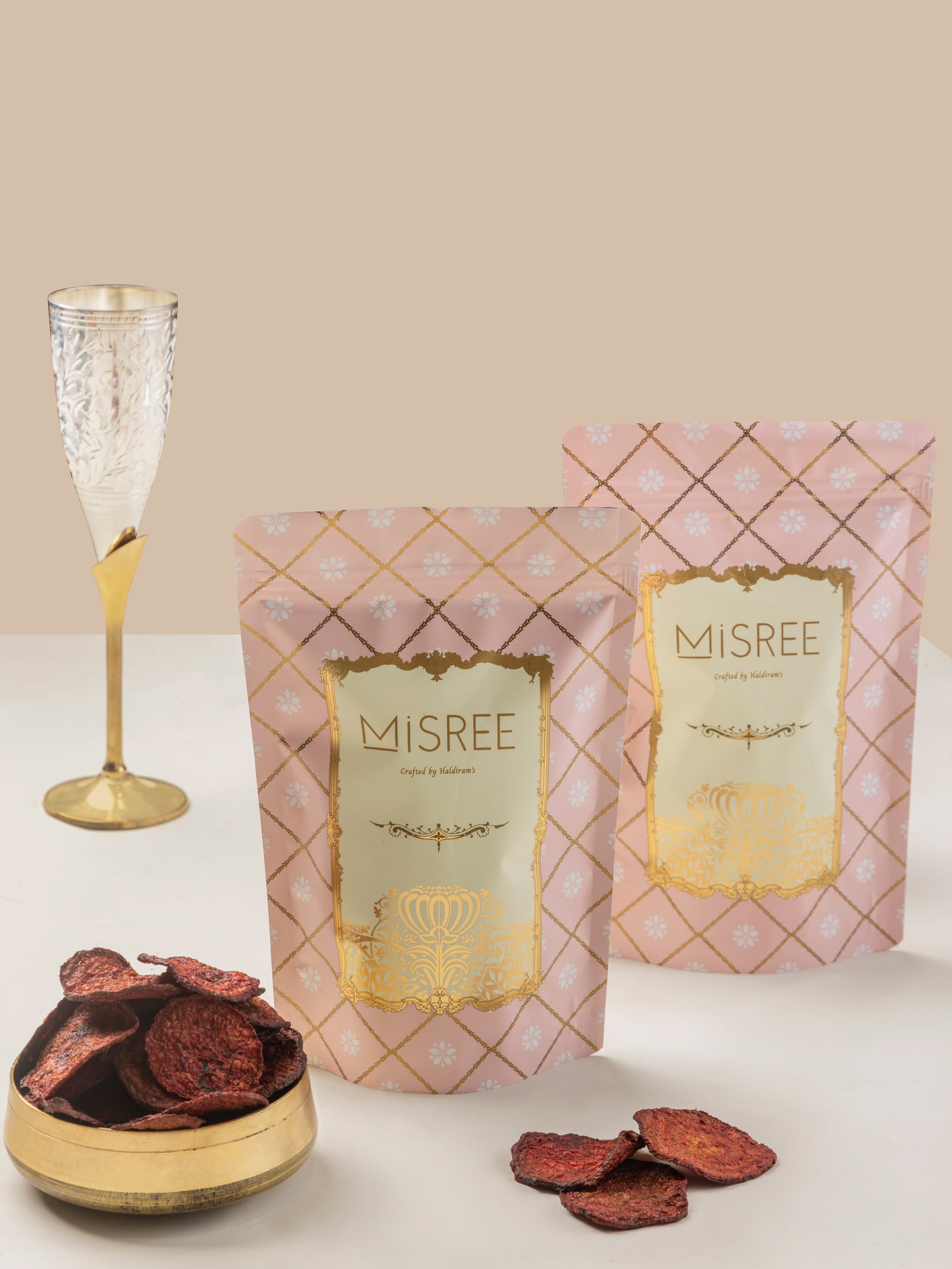 Crispy, vibrant, and naturally sweet—Misree’s beetroot chips are a deliciously guilt-free indulgence. Perfectly sliced and lightly seasoned, these chips bring you the earthy richness of beetroot in every crunchy bite.