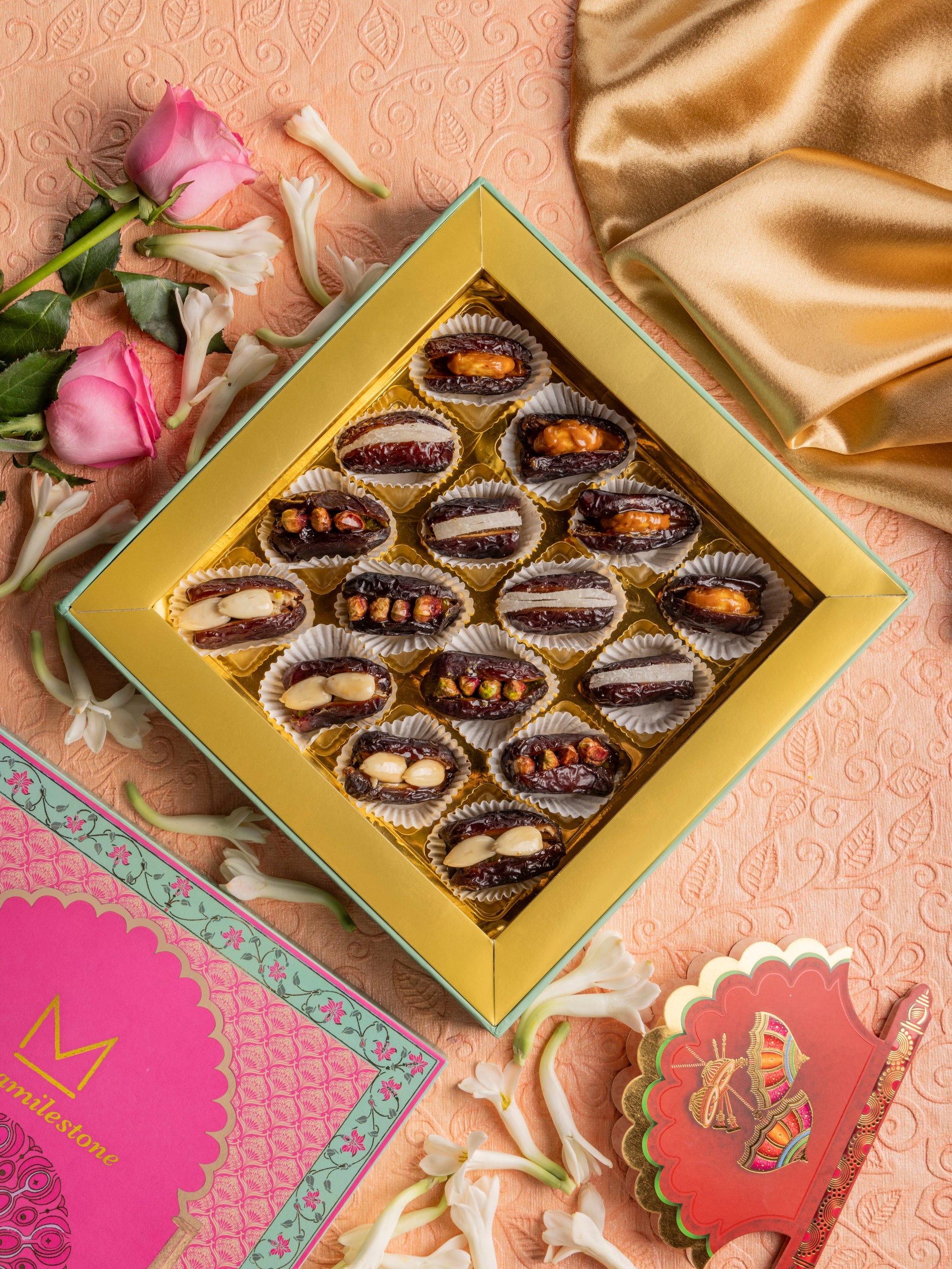 Indulge in the Box of Assorted Dates, featuring a delightful variety of nature's sweetest treats. Each date is carefully selected for its rich flavor and unique texture, making this elegant box a perfect gift or a healthy indulgence for any occasion.