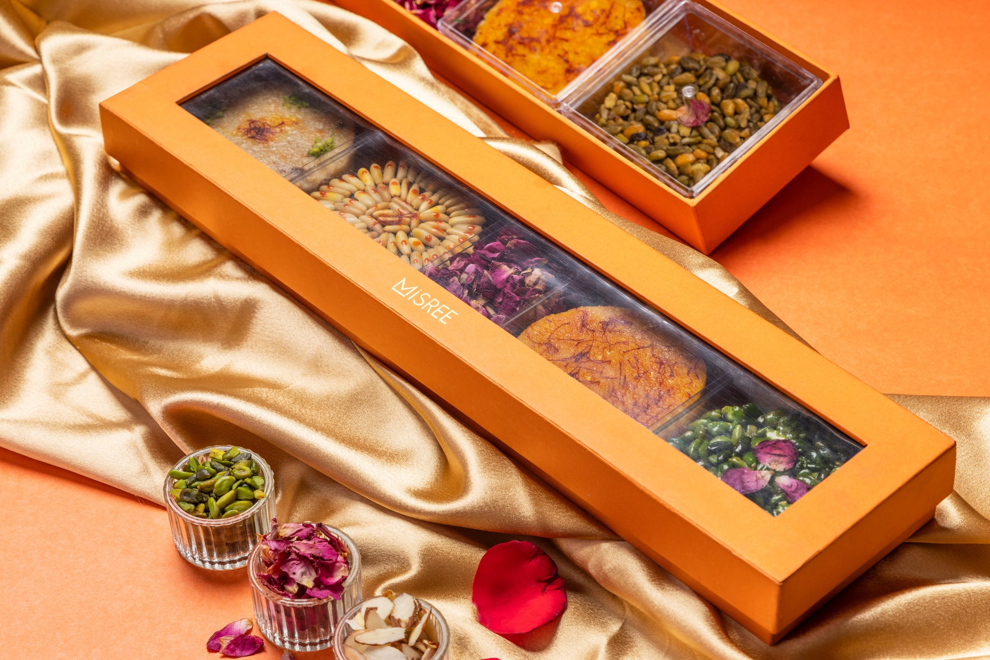 Savor the rich flavors of our Sweet Cake Hamper Box, including Badam Kesar, Pine Nut, Pista, and Butterscotch cakes. Each one is carefully crafted to bring a unique taste experience, making it the ideal treat for any occasion. Perfect for gifting or sharing with loved ones!
