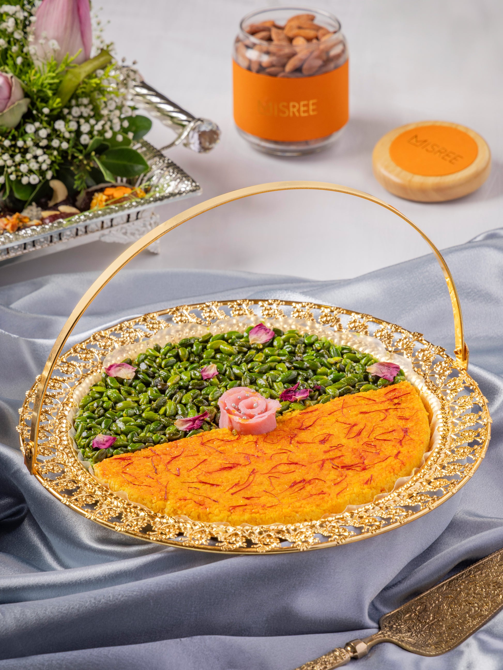 An opulent collection of Misree’s signature cakes, elegantly set in a golden tray. From butterscotch to pista, each bite brings warmth, flavour, and celebration.