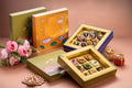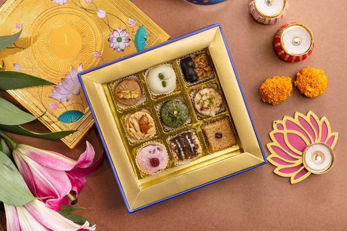 The Kamal Box in orange—an elegant, lotus-inspired creation that captures the essence of tradition and festivity. Filled with luxurious sweets, this box radiates warmth and joy, making it the perfect gift for any celebration. Customize your box by selecting from a curated list of our most exotic offerings.