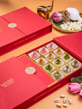 An exquisite oval-shaped gift box filled with 24 pieces of premium handcrafted sweets. Elegantly designed with a floral motif lid and golden finish, this luxurious box is perfect for festive gifting, weddings, or special celebrations. Each sweet is crafted with rich ingredients, offering a delightful blend of taste, tradition, and elegance in every bite.