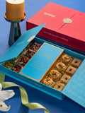 Introducing the Moksha Box of 16, a thoughtfully curated selection of 16 exquisite sweets that embody the essence of celebration and tradition. Elegantly presented, this box is perfect for sharing joy and indulgence during special occasions. Customize your box by selecting from a curated list of our most exotic offerings.