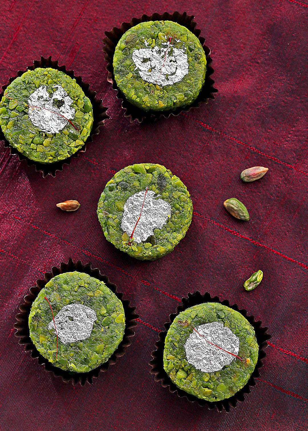 Carefully crafted with Pista, Kesar, Silver leaf and Gulkand, this mithai gives you a burst of flavor with every bite.