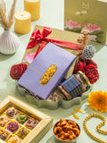 Swastika Metal Tray Hamper, perfect for celebrating Holi with joy and flavors! This hamper includes: